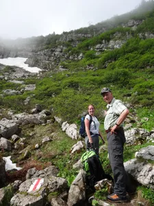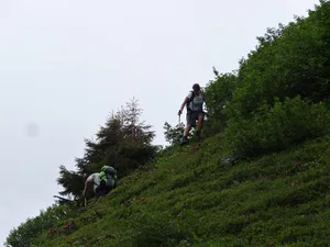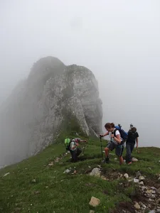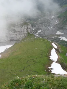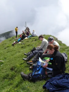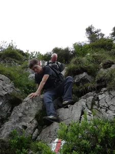 die ersten Höhenmeter überwinden wir bequem mit der Seilbahn von der Sellamatt gehts los… unser Ziel, der Zuestoll zeigt sich durch den Nebel wir erreichen die Abzweigung Langlitten wir wählen den Weg zum Zuestoll und überwinden die erste Kletterpassage der kurze Abstieg vom Grätli ist geschafft; nun beginnt der Gipfelsturm nochmals eine kurze Kletterpassage, mit Drahtseilen gesichert wir erreichen nach 3 Stunden den Gipfel des Zuestoll auf 2234m herrliche Aussicht auf den Walensee ..und zwischendurch Richtung Säntis und das Toggenburg bald gehts dann wieder zurück der Aufstieg zum Grätli sieht schlimmer aus als es wirklich ist; Trittsicherheit ist aber von Vorteil der Aufstieg ist einfacher als zuvor der Abstieg das Grätli beim Abstieg die Frühlingsblumen sind verspätet; die Kalk-Polsternelke aber schon in voller Blüte Blick zurück zum Gipfel steiler Abstieg was von Weitem wie eine Orchidee aussah, entpuppt sich als quirlblättriges Läusekraut auch die letzte Steilstufe bewältigen wir problemlos ein Blick zurück zum Zuestoll